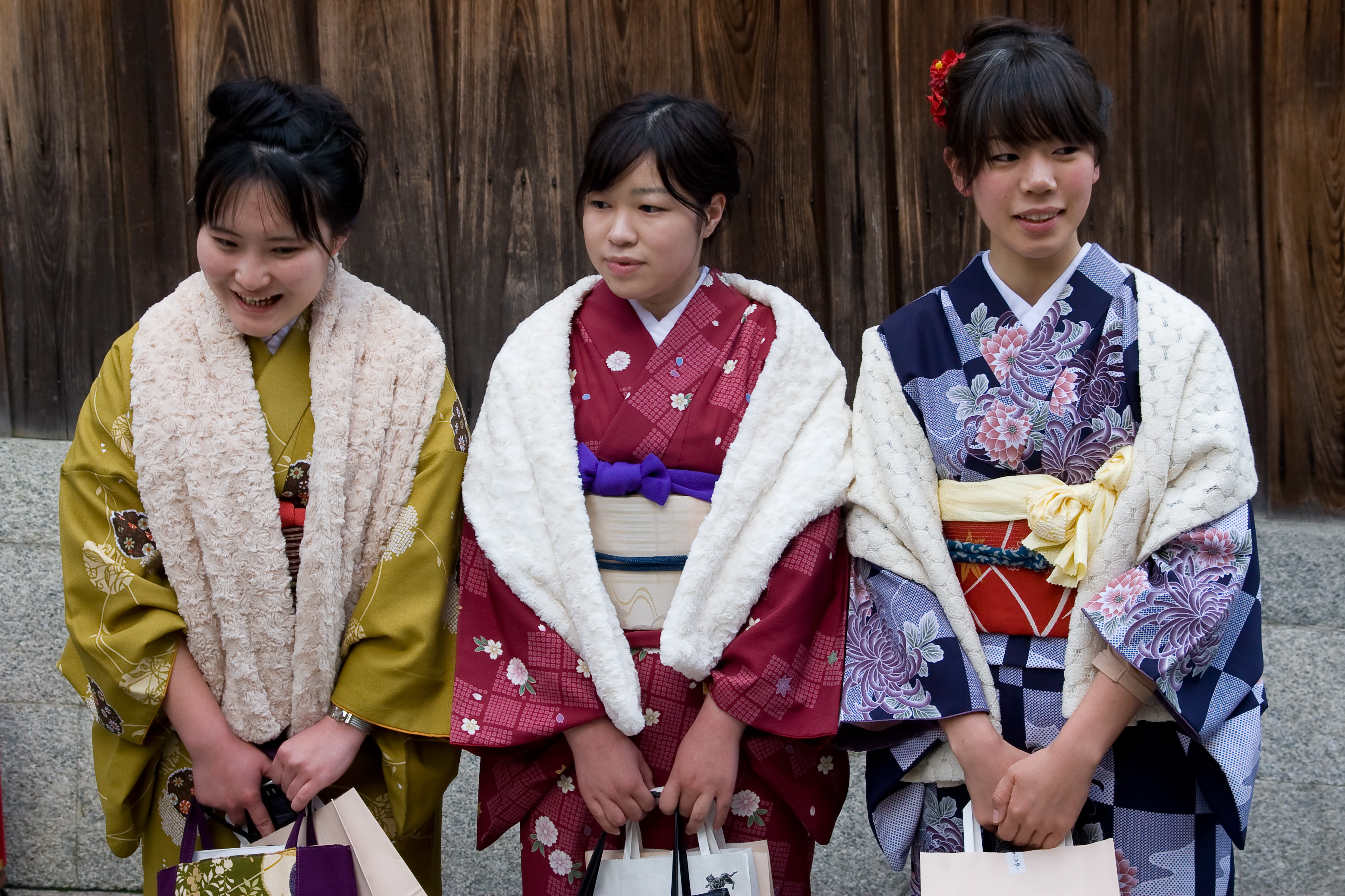 Tuvimos suerte y nos cruzamos con varias chicas que iban vestidas con el traje tradicional japonés. Como pudimos les preguntamos si podíamos hacerle una foto y amablemente posaron para nosotros.