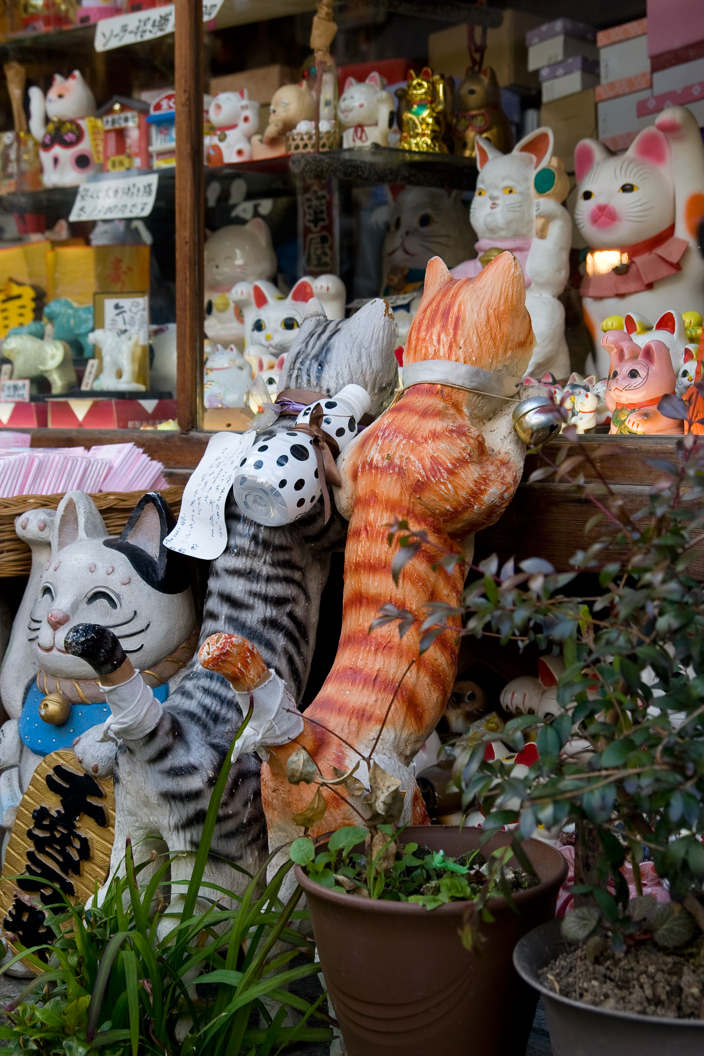 Una tienda en la que tenían figuras de gatos de todos lo tipos y colores. Me gustaron estos que están encaramándose en la ventana.
